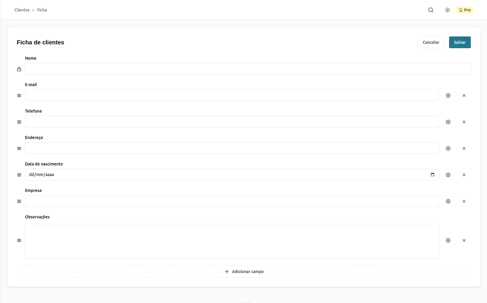 Crie ficha de clientes adaptada às necessidades do seu negócio. Cadastre informações essenciais de forma prática.